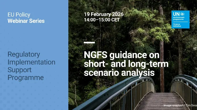This webinar, organised by the Network for Greening the Financial System (NGFS) and UNEP FI, will present updated guidance on short- and long-term climate scenario analysis, offering practical insights on strengthening scenario practices and preparing for upcoming regulatory and stress-testing requirements.